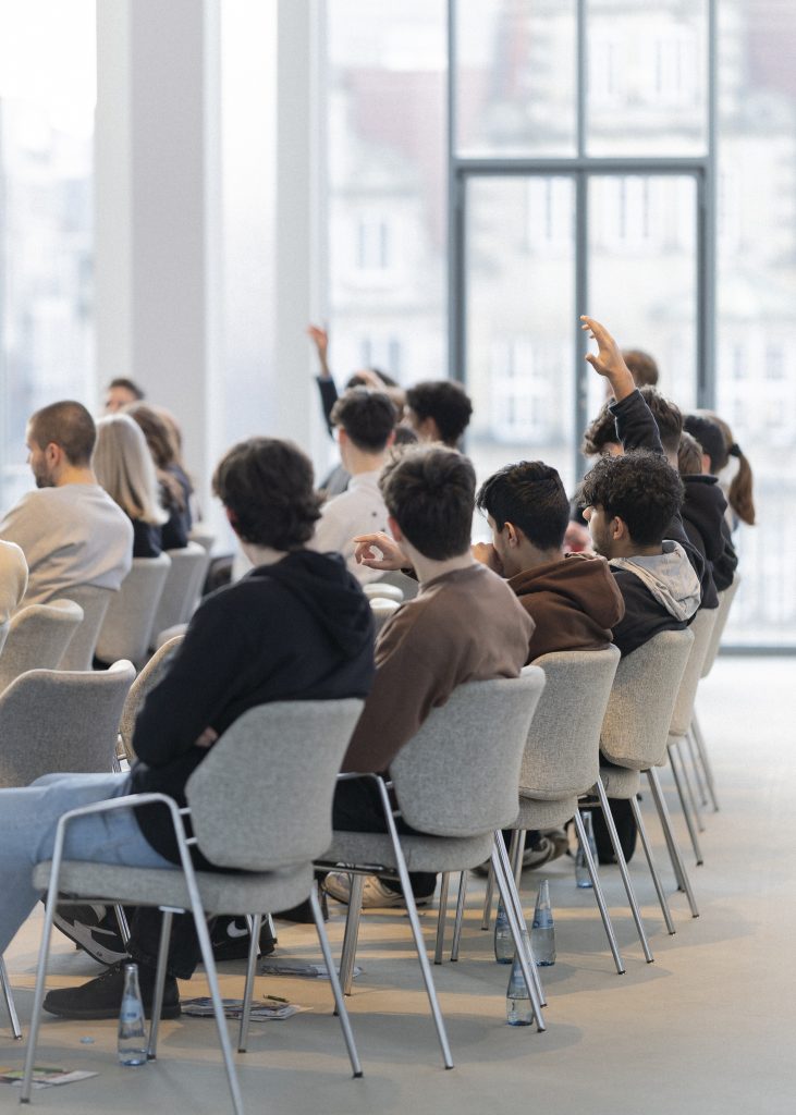 Antworten darauf gaben nicht nur die eingeladenen Expert:innen Prof. Dr. Pia Lange, Zentrum für Europäische Rechtspolitik der Universität Bremen, Dr. Thomas Köcher, Landeszentrale für politische Bildung und Dr. Helga Trüpel, Europa-Union Bremen, sondern auch das Publikum selbst. In Form einer Fish-BowlDiskussion hatte jede teilnehmende Person die Chance, sich selbst zum Kreis der Expert:innen zu gesellen, eigene Fragen zu stellen oder auch eigene Ansätze und Bedarfe zu formulieren. Gerade die anwesenden Erstwähler:innen nutzten diese Möglichkeit und erklärten, wie wichtig eine gute politische Bildung ist, um sich auf die Stimmabgabe vorzubereiten. Denn mit dem Beschluss des Bundestages vom Herbst 2022 wurde das Mindestwahlalter bei der Europawahl in Deutschland auf 16 Jahre herabgesenkt.