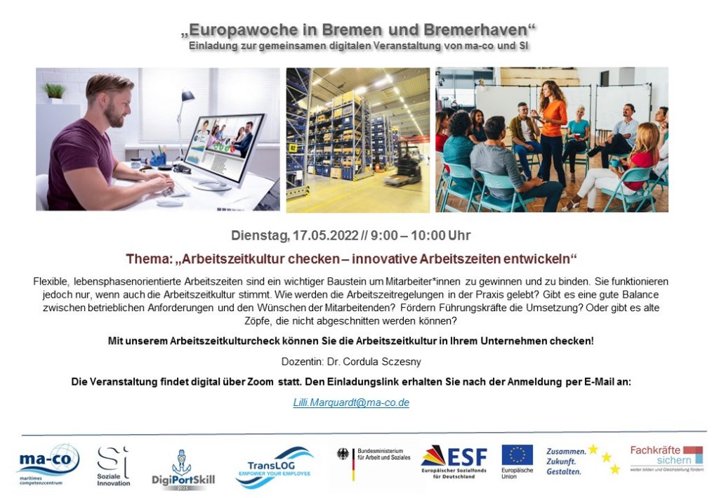 Das Projekt wird durch die Senatorin für Wirtschaft, Arbeit und Europa aus Mitteln des Landes und des Europäischen Sozialfonds (ESF) gefördert.